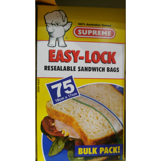 Supreme Easy-Lock Resealable Sandwich Bags, 75-pack, 18x17cm